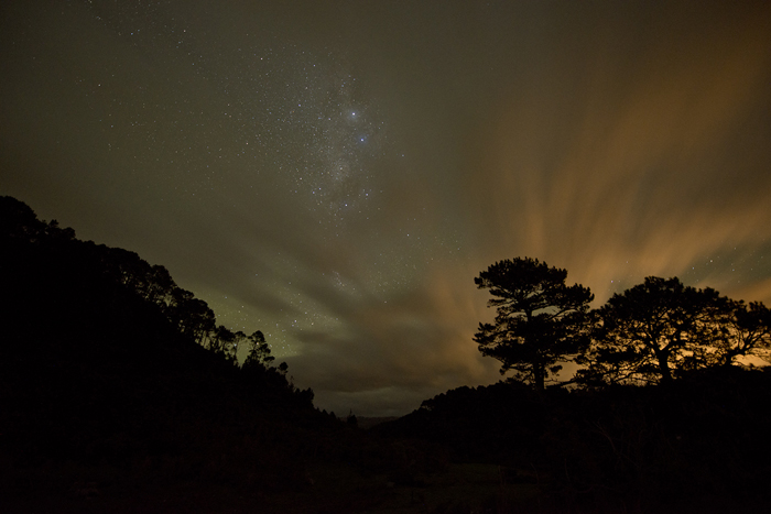 As we had planned to departfrom Saint Bathans on 4 July 2014, it meant that we would only have one last morning opportunity for taking photos at Blue Lake. So I got up the next morning before twilight and went to the cliff edge above the lake. It was pretty cold and I could feel gale force winds whip past my cheeks. The dark sky was still full of stars and I saw some dramatic clouds forming in the northeastern direction.
