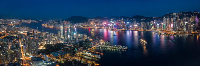 The Hong Kong Skyline is one of those classic shots which, if you’re in the locality, you’ll probably want to photograph and photograph well. An internet search (and indeed a search on 1x) will reveal a variety of shots: some from Victoria Peak looking towards Kowloon, some from Kowloon from the rooftop car parks adjacent to the Star Ferry terminal, and the one which I think is most effective and which I describe here in detail is the view from the Sky100 viewing deck on Kowloon looking back towards central Hong Kong.