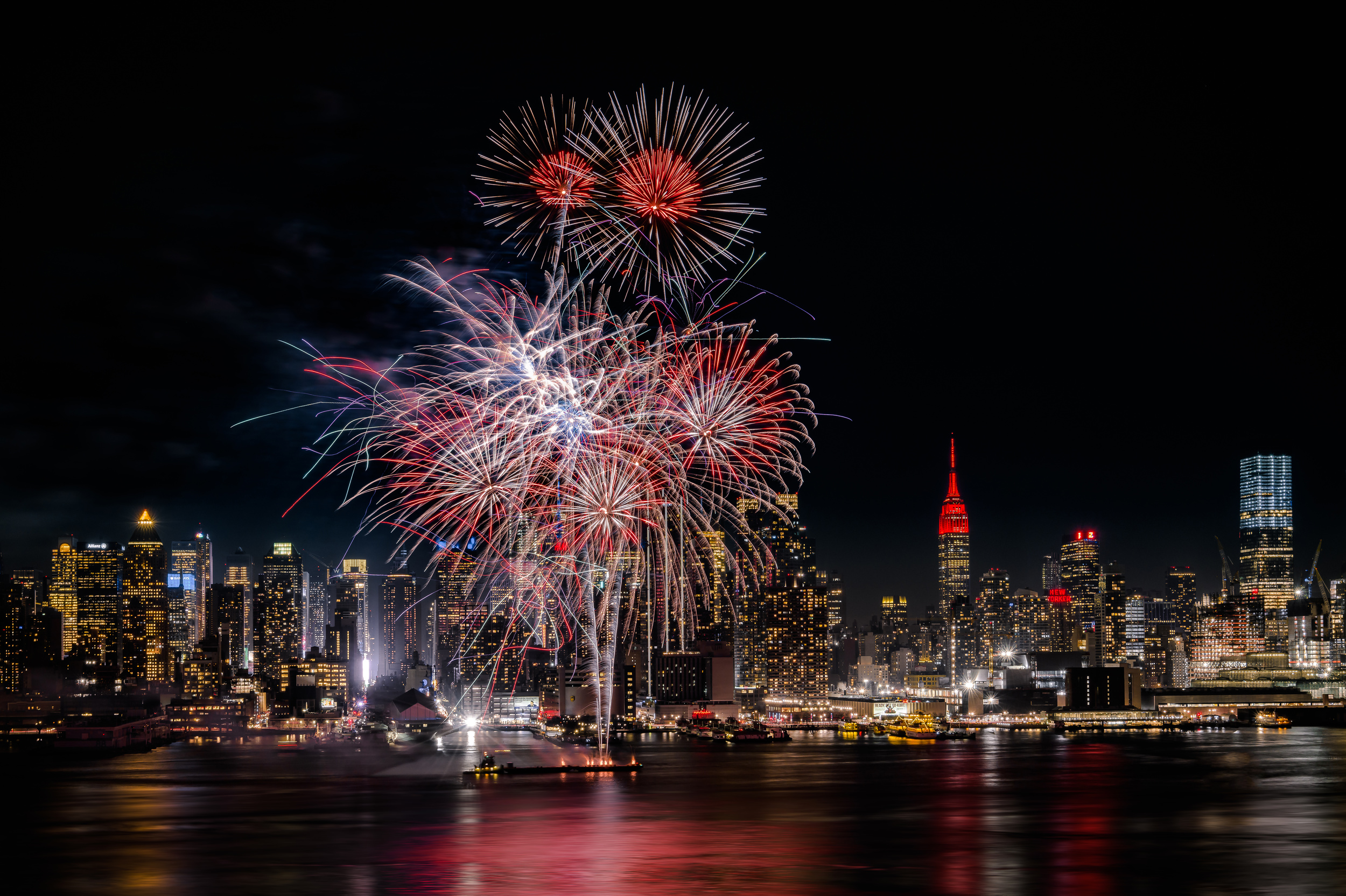 Australians celebrate the New Year with midnight fireworks in cities and towns throughout the country. Firework displays are launched off bridges, such as the Sydney Harbour Bridge, from jetties along the beaches, and on river banks, with the lights of the fireworks sparkling off the water. In a typical year, people pack picnic baskets and arrive hours early to get the best viewing spots.